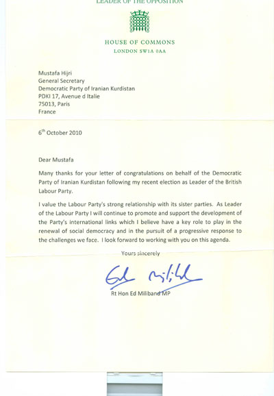 عنوان رهبر حزب كار بریتانیا ارسال نموده بودید.